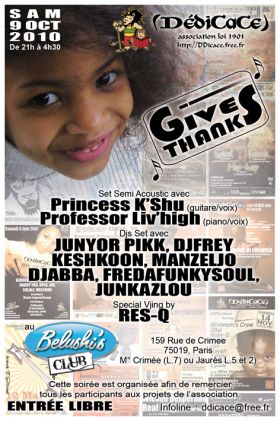 ...Au programme : Soirée Reggae Dancehall Hip Hop Soul Funk Latino ! Set Semi acoustic avec PROFESSOR LIV HIGH et PRINCESS K SHU et clubbing avec les djs : JUNYOR PIKK, DJFREY, KESHKOON, MANZELJO, DJABBA (Shadow Killa), FREDAFUNKYSOUL, RES Q (Junior Sound), et JUNKAZLOU.