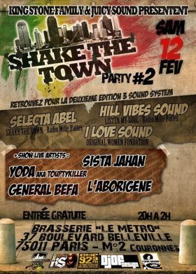 SHAKE THE TOWN c est avant tout une émission de radio reggae/dancehall en ecoute tous les mardi de 22H30 a Minuit sur www.radiomillepattes.com